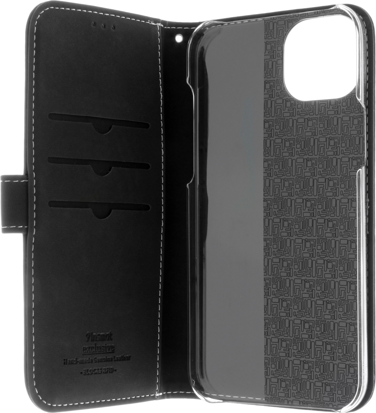 Snyggt Flip-fodral handgjort av äkta läder, med tre kreditkortsfack och en stor ficka.