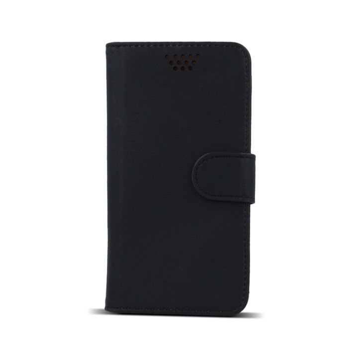 Mooie praktische beschermhoes voor uw smartphone. Biedt goede bescherming tegen krassen en stoten terwijl het er ook nog eens mooi uitziet. De hoes heeft een magnetische sluiting om te voorkomen dat de telefoon eruit valt. In de hoes bevindt zich een groot vak voor bankbiljetten en een kaartvak voor uw creditcards. Bovendien heeft de hoes een universele handgreep die draaibaar is, zodat u foto's kunt maken zonder de telefoon uit de hoes te halen. Geschikt voor alle telefoons met een formaat van: 4.5-5.0"" (69x141)