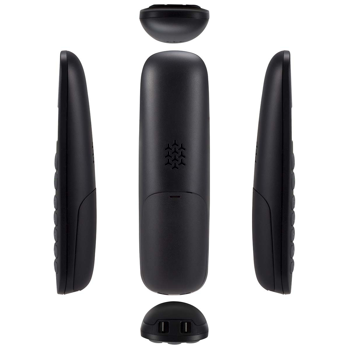 Dit apparaat heeft alle basisfuncties die je van een vaste telefoon zou verwachten. Als je gebeld wordt, zie je de naam en het nummer van de beller op het duidelijk verlichte display. In het interne telefoonboek is ruimte voor maximaal vijftig contacten. Als je niet kunt opnemen, kan de beller een bericht achterlaten op het antwoordapparaat (met een digitale opnamecapaciteit van vijftien minuten). Je kunt ook snel de laatste vijf nummers bellen waarmee je contact hebt opgenomen met de nummerherhalingsfunctie. Zowel de stand-by- als de gesprekstijd zijn extra lang: respectievelijk tot 100 uur en tot 10 uur.