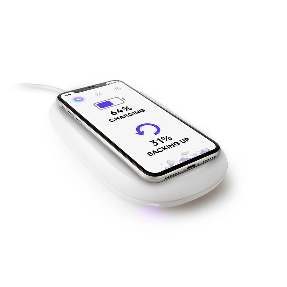 10W Ixpand® Wireless Charger Sync stöder snabb trådlös laddning för Qi™-kompatibla iPhone, Samsung och andra smartphones samtidigt som du automatiskt säkerhetskopierar foton och videor i full upplösning direkt på laddaren. Levererar upp till 10W effekt.
