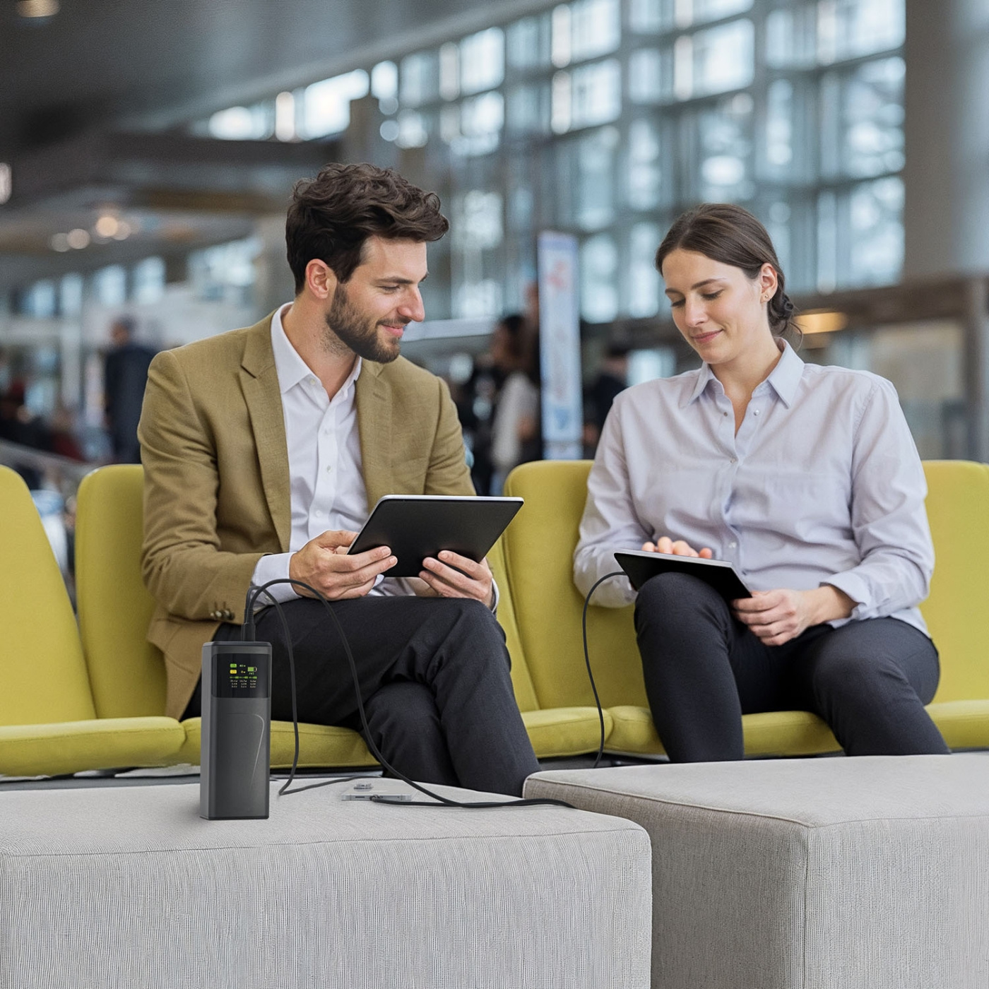 Säkerheten är en prioritet med certifierade celler som ger överladdning, överspänning, överhettning och kortslutningsskydd. Powerbankens display visar återstående batterikapacitet och uteffekt, så att du kan hantera dina laddningsbehov på ett effektivt sätt. Dessutom har det ett lågeffektläge för mindre strömkrävande enheter, vilket säkerställer att de identifieras och laddas ordentligt.