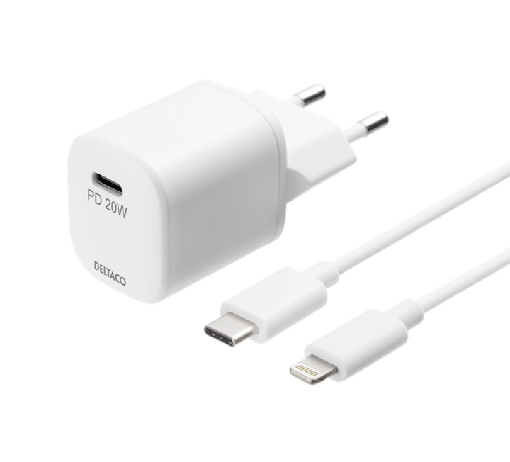 DELTACO USB wall charger, USB-C, PD 20 W, including 1 m C to Lightning