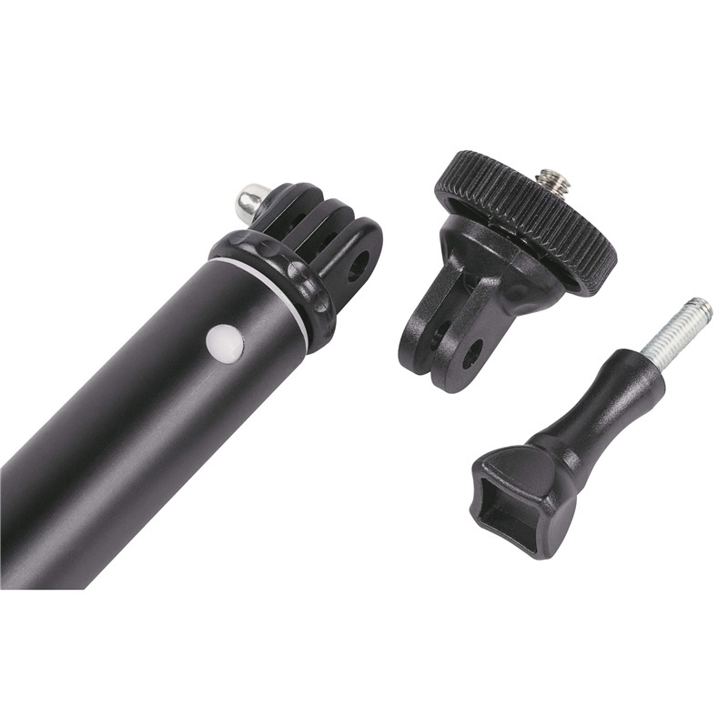 Selfiepinne med teleskopsfunktion som kan förlängas upp till 47 cm. Perfekt för att ta fräcka selfies eller där du behöver höjd för att ta bilder. Exemelvis på konserter eller vid gruppbilder. Med 2in1 system för 1/4" sativgänga för kameror samt en GoPro kamera anslutning. Med vadderat skumgrepp samt handledsrem och karbinhake för säkert och fast grepp. Kan även användas som stativförlängning.