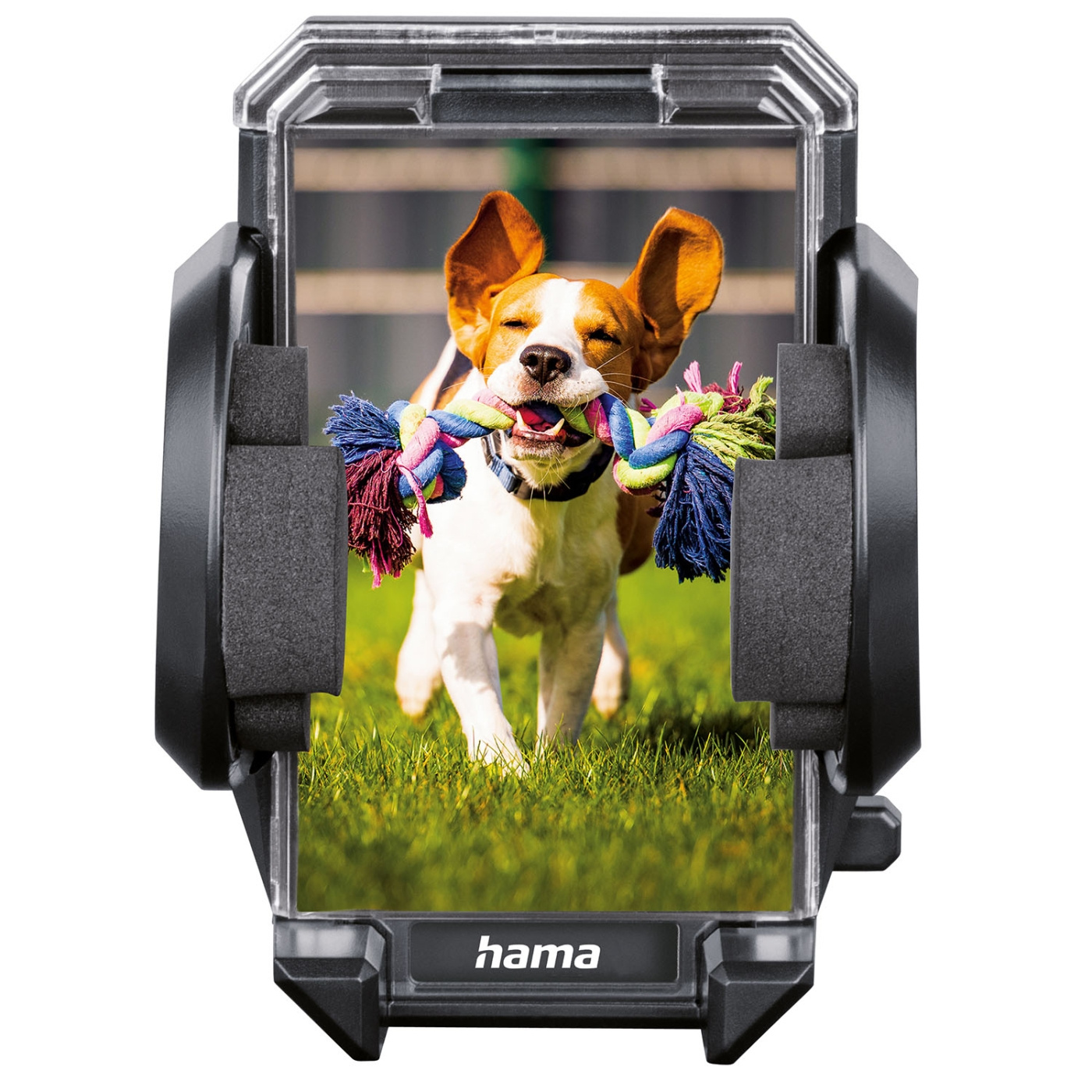 Den här mångsidiga biltelefonhållaren från Hama har flexibla monteringsalternativ och 360° rotation.