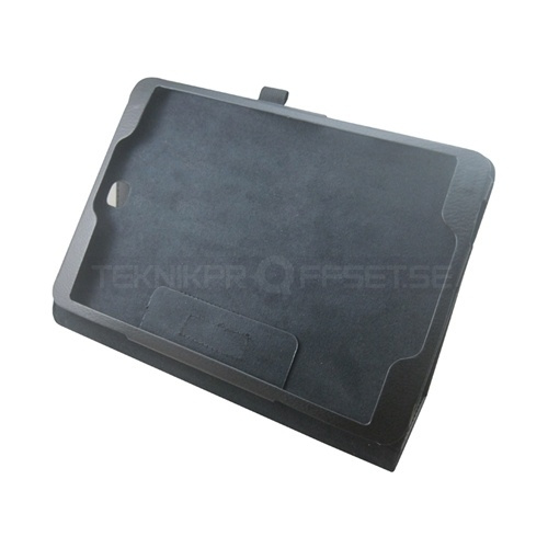 De tablet wordt aan de zijkant ingeschoven en zit stevig vast in het frame. Aan de achterkant bevindt zich een standaard waarmee u de hoes als een fotolijst kunt gebruiken en een comfortabele hoek kunt krijgen tijdens het typen. Dit maakt het ook gemakkelijker om een e-book of e-mail te lezen.