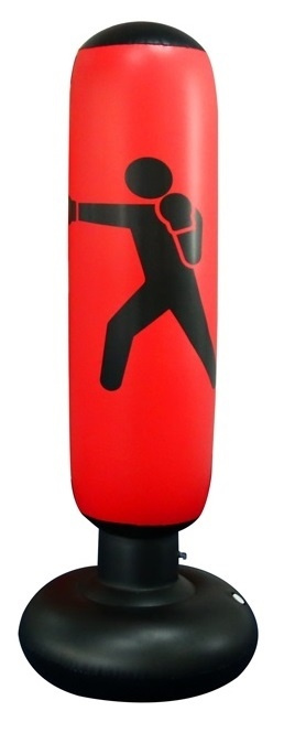 Uppblåsbar boxningssäck som är perfekt för dig som annars tränar kickboxning, taekwondo, karate eller annan kampsport och vill träna mer på fritiden. Fungerar även utmärkt för dig som vill träna sparkar och slag hemma eller i trädgården för en roligare vardagsmotion. Det som gör denna typ av säck roligare än en vanlig hängande är att denna studsar tillbaka och "attackerar" dig när du slagit eller sparkat på den. Detta gör det mycket roligare samtidigt som du kan öva på att parera och undvika slag.