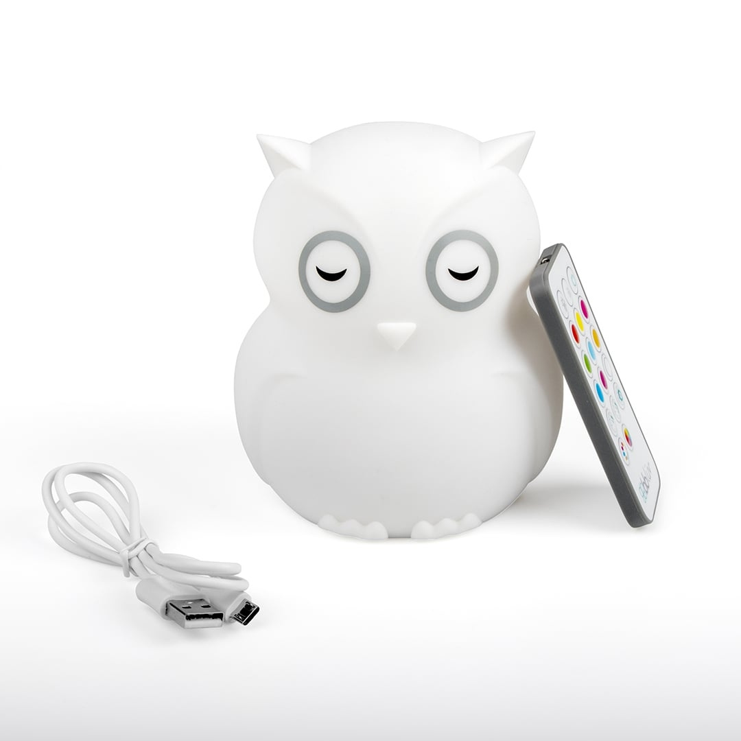 Voor extra gemak wordt de uil geleverd met een afstandsbediening, waarmee u zowel de helderheid als de kleur op afstand kunt aanpassen. Met 10 verschillende helderheidsniveaus kunt u gemakkelijk de perfecte instelling vinden om uw kind te helpen in slaap te vallen of om precies genoeg licht te bieden voor nachtvoedingen of het verschonen van luiers.