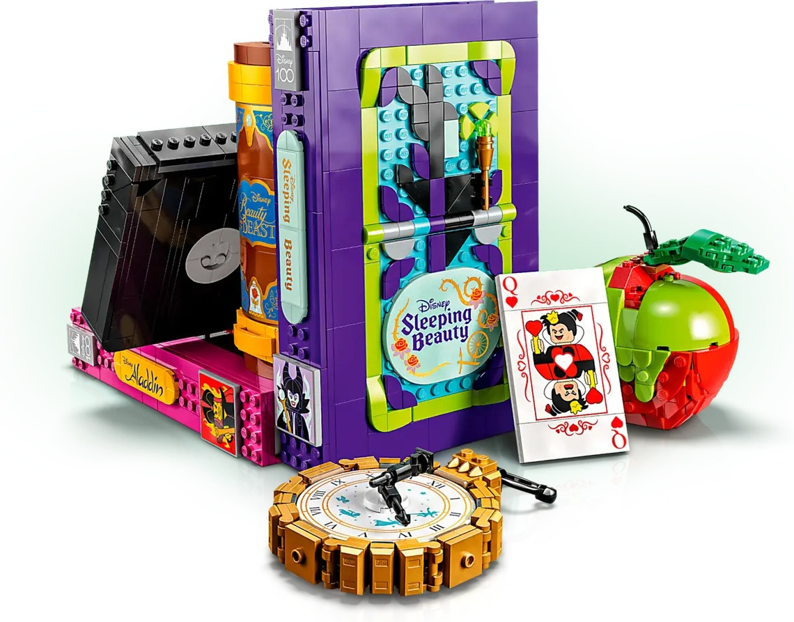 - Build and display – This Disney-memorabilia-filled set has 1,540 pieces that create several distinct items, including 2 VHS ‘cases,’ a video ‘tape’, poison apple, playing card, book and a pocket watch