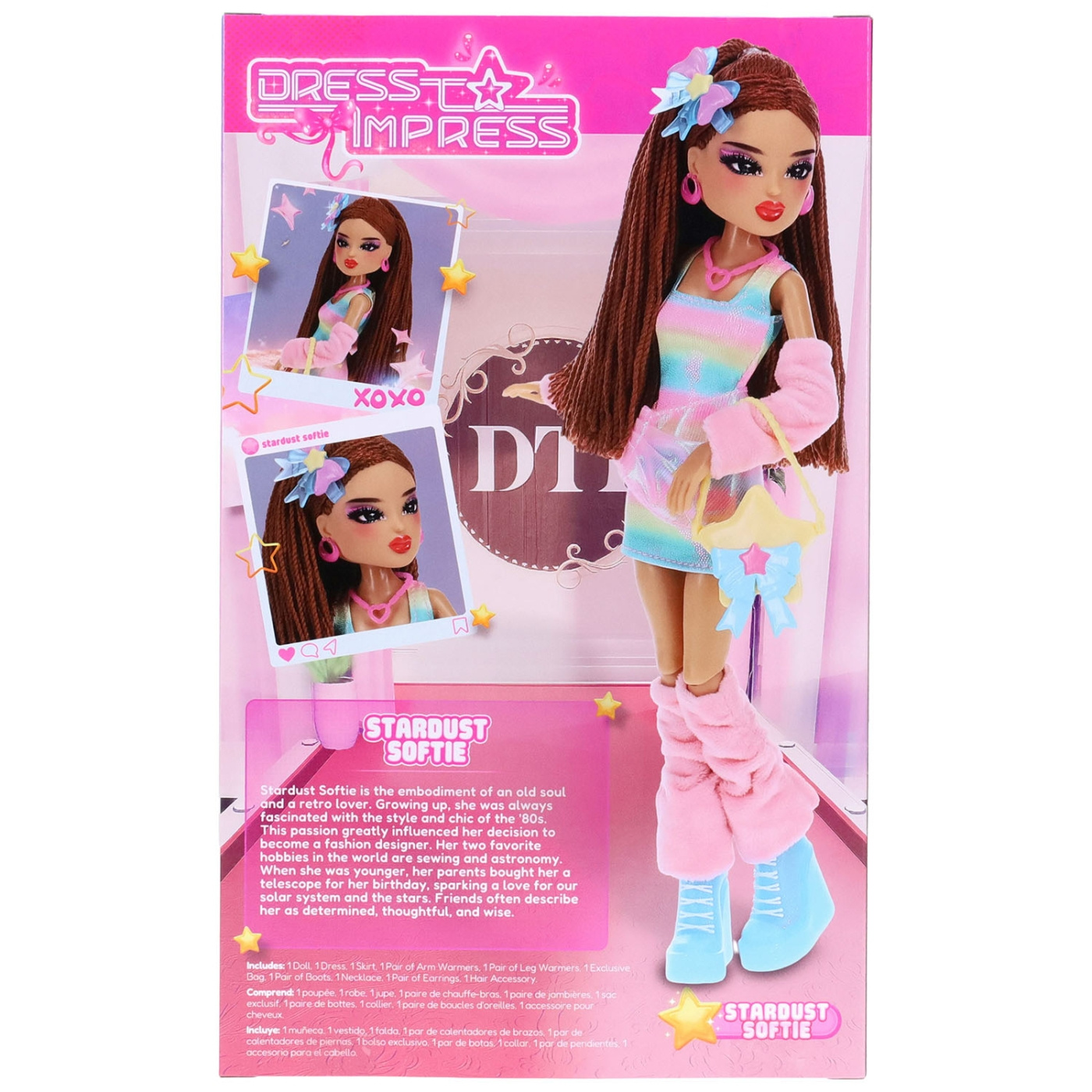 Stardust Softie är en drömsk modeikon från Dress to Impress-serien, känd för sina pastellfärgade vibbar och sin himmelska charm. Hon bländar i en flödande outfit med skimrande accenter och stjärnklara detaljer, vilket gör henne perfekt för att ta fantastiska poser och inspirera till magiska modeögonblick. Varje docka levereras med ett samlarkort med exklusiva konstverk och en DLC-kod för att låsa upp stilar i spelet. Oavsett om hon visas upp eller är en del av din grupp är Stardust Softie redo att lysa upp varje catwalk med sin utomjordiska glöd.