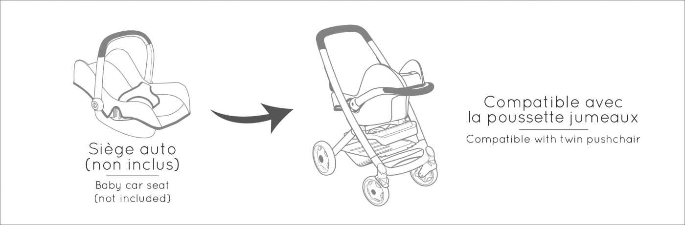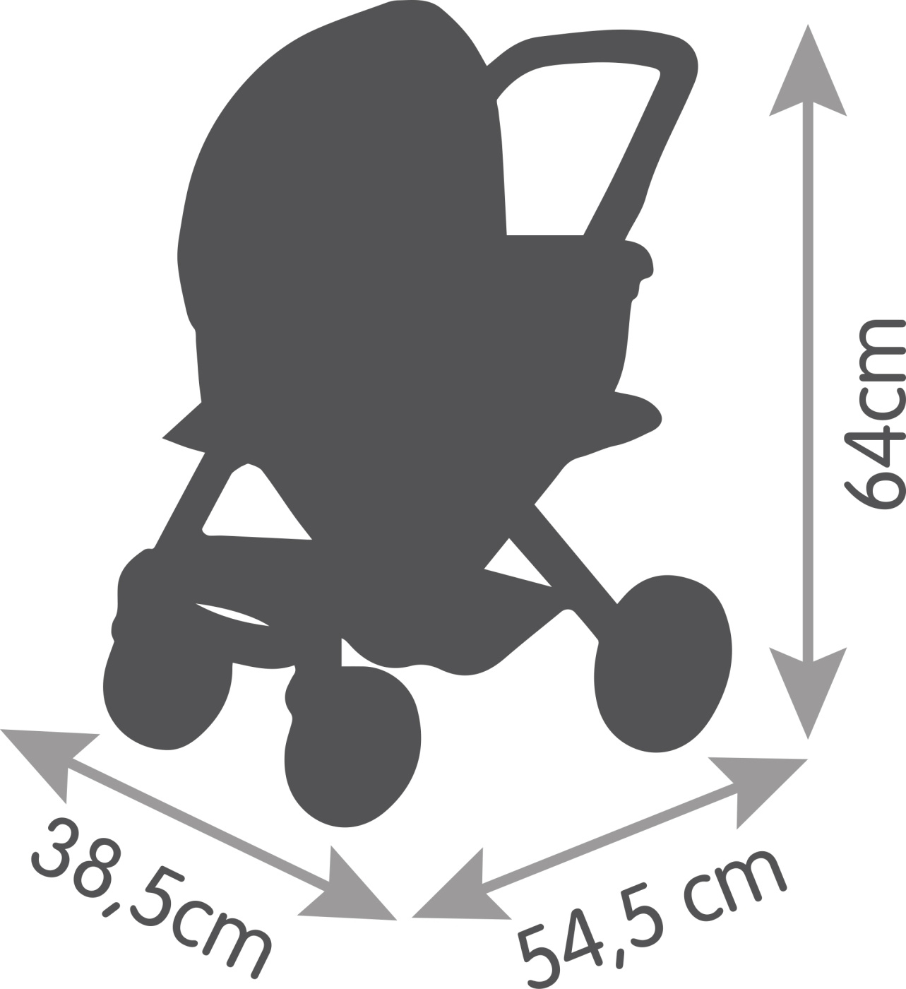 Dockvagnen är utrustad med fyra tysta hjul och svängbara framhjul för bekväma och trevliga promenader. Låt barnet fördjupa sig i leken med öppet sinne och anta rollen som mamma eller pappa för sin egen lilla bebis.