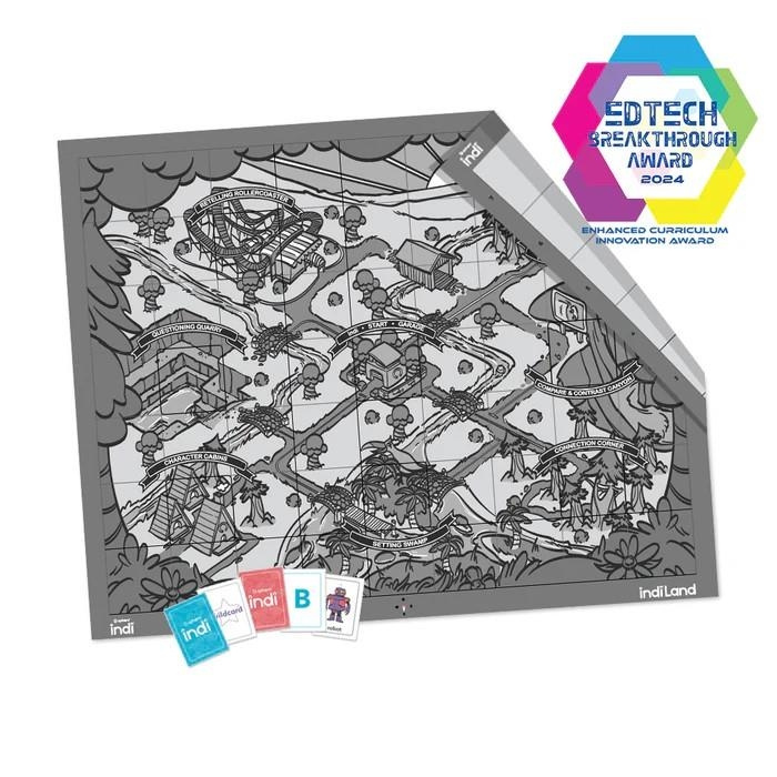 De ene kant verwelkomt leerlingen in indi Land, waar elk van de acht locaties verbonden is met een ander leesvaardigheidsconcept. Leerlingen kunnen kleurentegels gebruiken om indi naar de Vertelachtbaan te leiden en het begin, midden en einde van een verhaal bespreken of personages identificeren en overwegen in de Karakterhutten. Elke locatie biedt de mogelijkheid om geletterdheid te versterken en discussies te voeren die geworteld zijn in een gedeelde tekst.