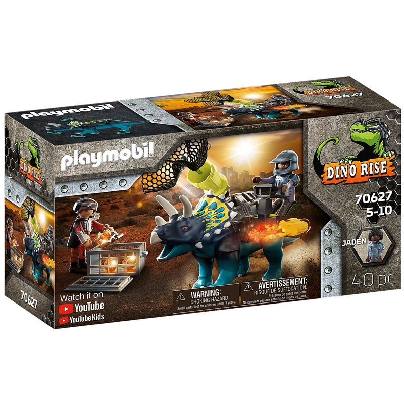 Ibland är fienden även mycket mindre än väntat, till exempel en mini-robot. De otäcka små maskinerna försöker obemärkt luska ut Dino Rise-teamets planer och göra de stora stridsrobotarna klara för strid. Men så lätt låter sig inte Dino Rise-teamet nedslås. För att vara förberedd mot stora och små motståndare har den bepansrade Triceratops inte bara en vanlig kanon utan också en särskild skyddsnätskanon. Om hans partner Jaden kastar ut säkerhetsnätet i rätt ögonblick fastnar och immobiliseras även minirobotarna.