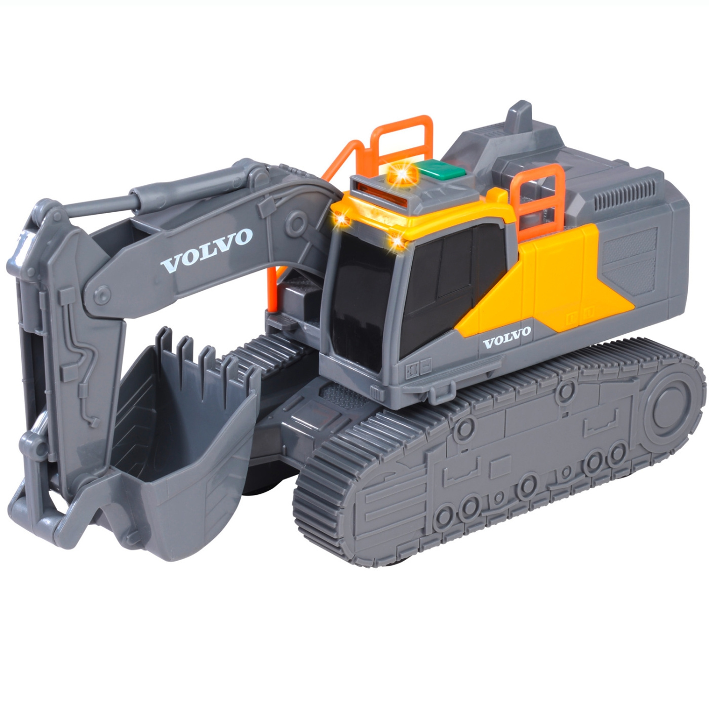 En kraftfull grävskopa med frihjul som har allt man kan förvänta sig från ett leksaksfordon. Den stora skopan kan röras från höger till vänster och justeras med hjälp av armen. Förarhytten kan även rotera för att flytta skopan - precis som på en riktig grävskopa. Grävskopan har även ljus- och ljudeffekter för att stimulera sinnena och fantasin.