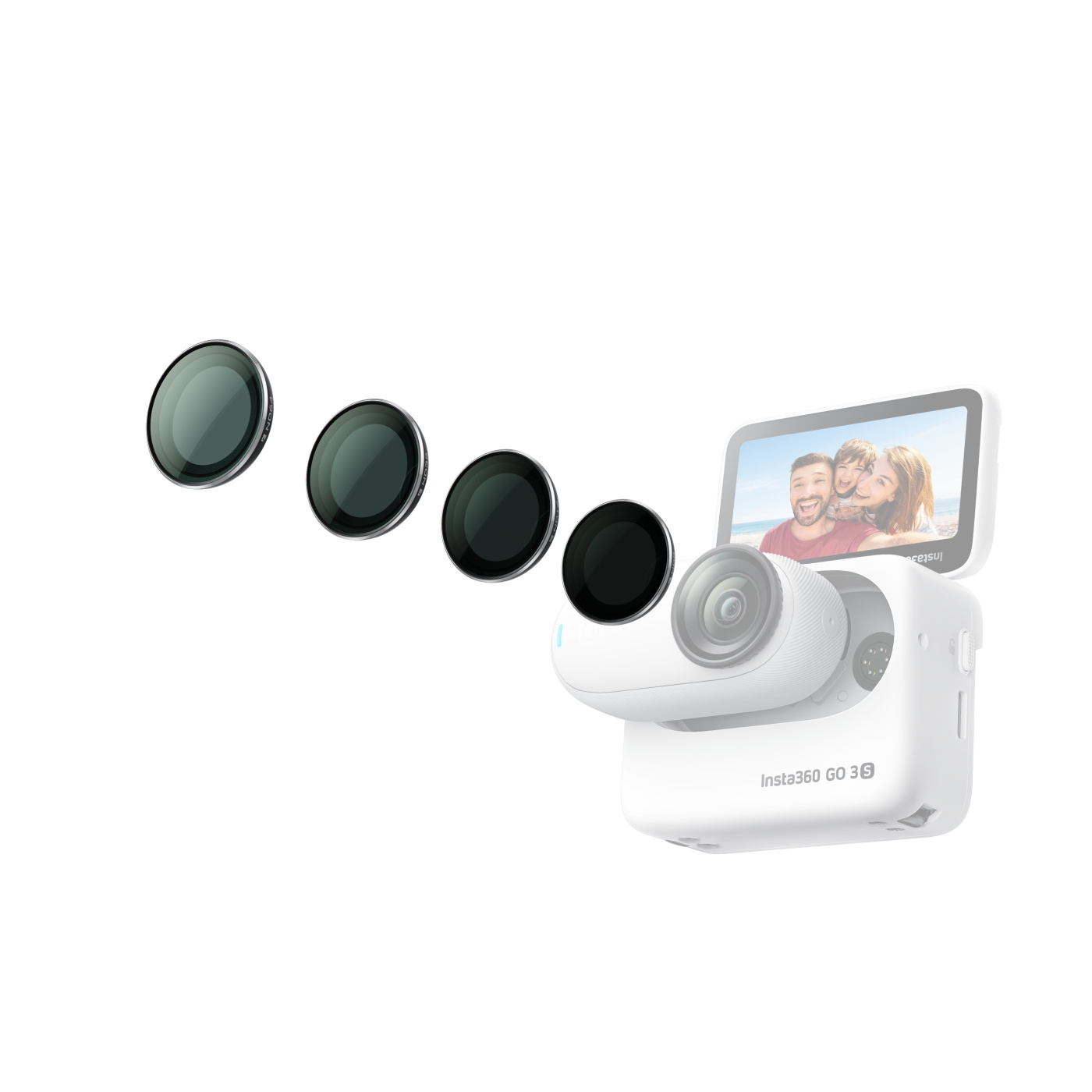 De Insta360 GO 3S ND-filterset is een accessoire van professionele kwaliteit, ontworpen om de veelzijdigheid en prestaties van je Insta360 GO 3S actiecamera te verbeteren. Deze set bevat ND-filters (Neutral Density) die helpen het licht dat de cameralens binnendringt te regelen, zodat je betere belichting en filmeffecten kunt krijgen in verschillende lichtomstandigheden.