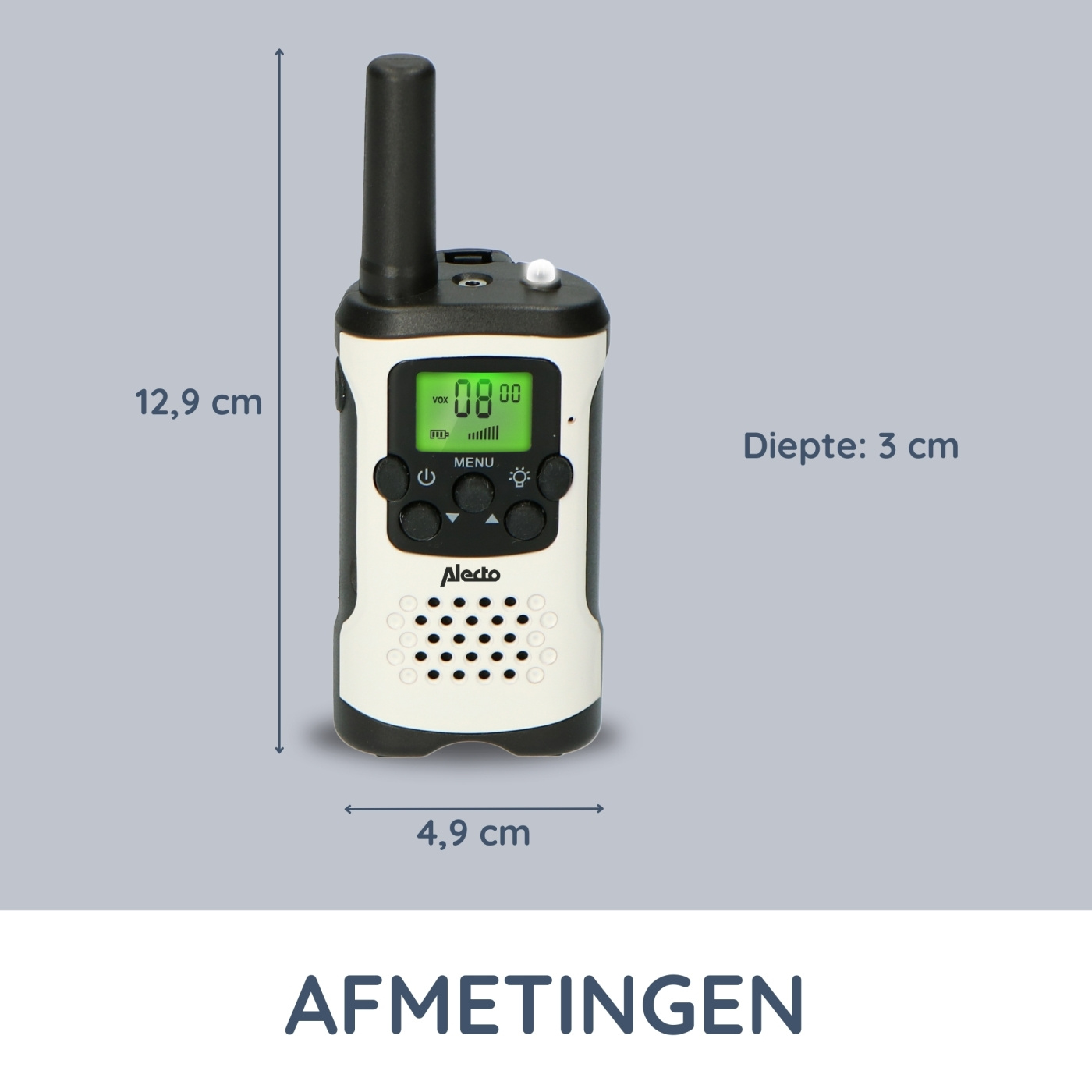 Deze duurzame outdoor walkietalkies zijn in staat om tijdens elke activiteit goed en gratis contact met elkaar te houden. Deze set is voorzien van een riemclip en heeft een compact formaat. De walkietalkies maken gebruik van 8 kanalen en scannen zelf naar de beschikbare kanalen. Verder is het ook nog superhandig dat deze set handsfree te gebruiken is in combinatie met de Alecto FRH-10-headset. Dit maakt de walkietalkies ook legaal en veilig te gerbuiken tijdens het rijden.