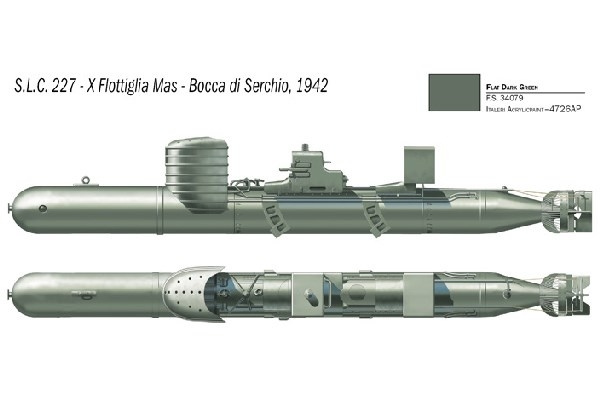 The modified torpedoes had limited speed, were fitted with a guidance system and held batteries that powered the electric motor which guaranteed a range of 12-15 miles. The most notable action of these Italian Navy raiders took place on 19th December 1941. Transported by the submarine "Scirè" to the strongly defended Alexandria harbour, the S.L.C.’s were able to attack and disable for several months, Royal Navy battleships H.M.S: Valiant and the H.M.S. Queen Elizabeth..