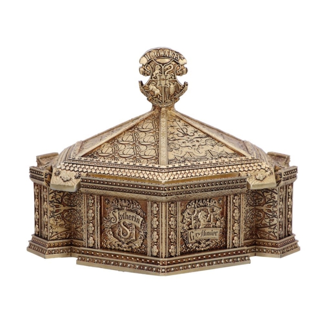 De magie wacht op je met deze officieel gelicenseerde Harry Potter snuisterijdoos van Zweinstein. Met de vier huizen van Zweinstein aan de buitenkant, samen met incricate details gebaseerd op de Deathly Hallows en Zweinstein. Gegoten in de fijnste hars en afgewerkt in brons, is deze Hogwarts Prullendoos gemaakt om al je geheime schatten veilig in op te bergen.