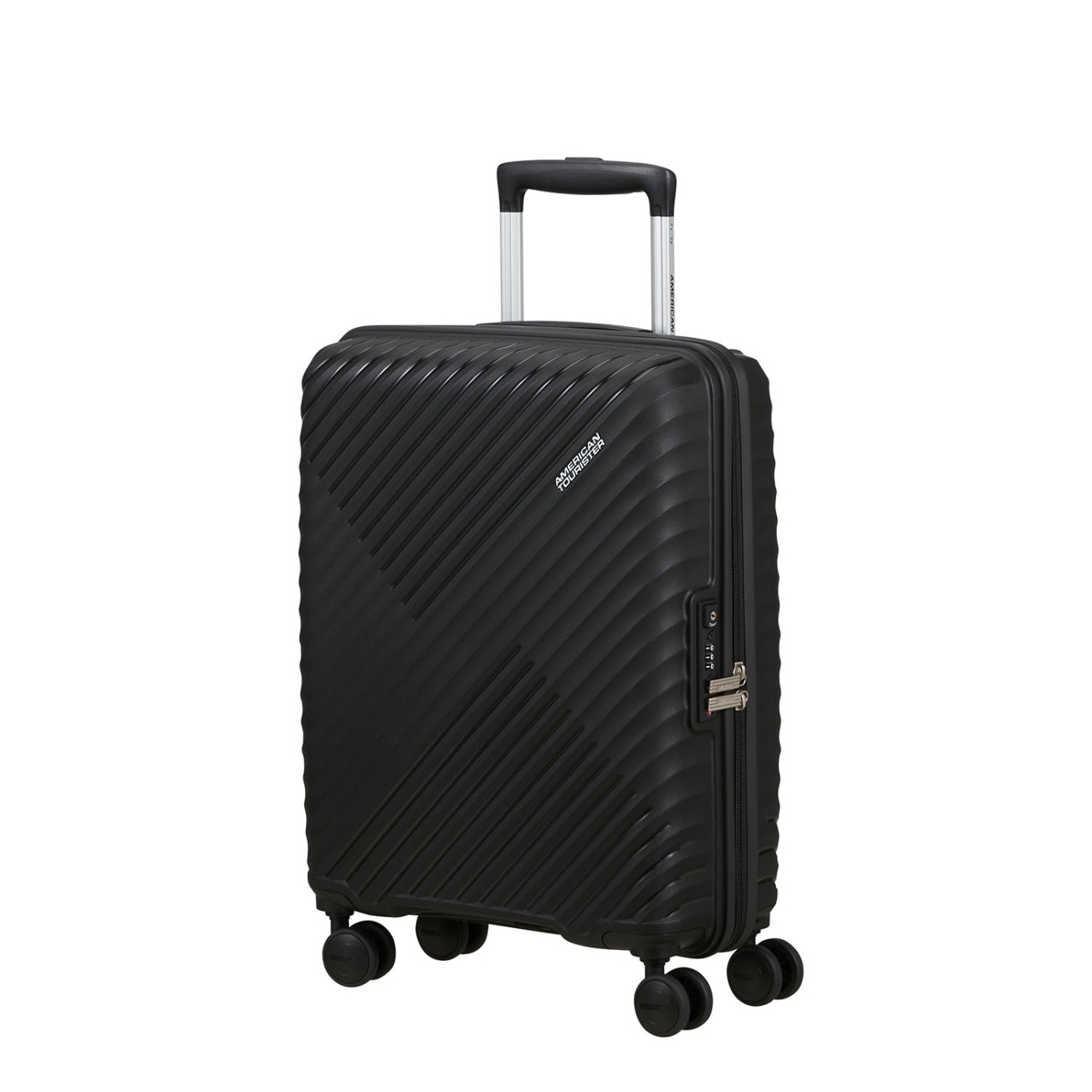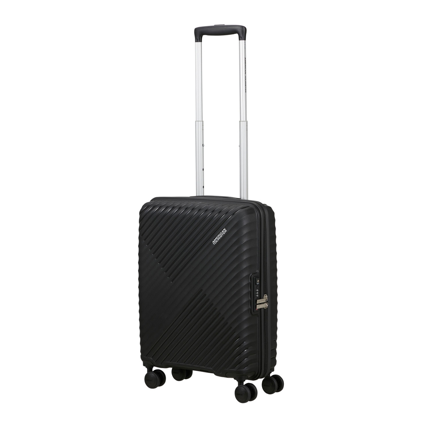 En resväska från American Tourister med TSA-lås och lättrullande hjul.