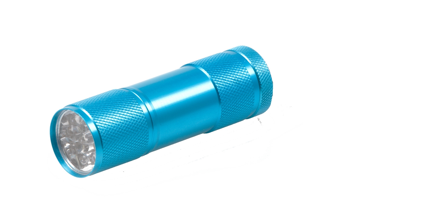 Liten, lätt och praktisk ficklampa med 9 LED-dioder som är lätt att ha med sig.
